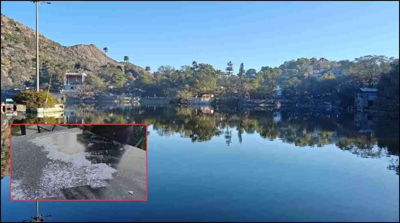 माउंट आबू में मौसम ने ली करवट, बादलों के हटते ही तापमान में 10 डिग्री की भारी गिरावट। जमाव बिंदु से 3 डिग्री नीचे पहुंचा पारा, मैदानों और उद्यानों में जमी बर्फ की सफेद चादर। राजस्थान के इस इकलौते हिल स्टेशन पर उमड़ रहे हैं पर्यटक, नए साल के दूसरे दिन दिखा बर्फीला मंजर। जानिए माउंट आबू के शीतलहर और पर्यटन की पूरी रिपोर्ट।