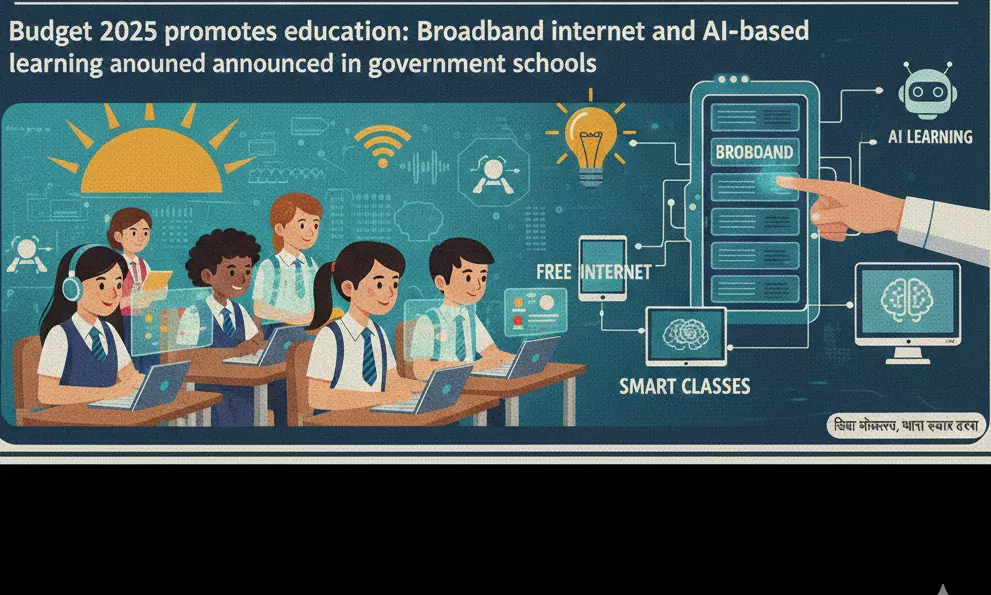 केंद्रीय बजट 2025‑26 में वित्त मंत्री निर्मला सीतारमण ने सरकारी स्कूलों में ब्रॉडबैंड इंटरनेट और AI आधारित शिक्षा की घोषणा की। बजट में डिजिटल समावेशन, Atal Tinkering Labs और AI केंद्रों के साथ छात्रों को भविष्य‑तैयार बनाने पर जोर दिया गया है।