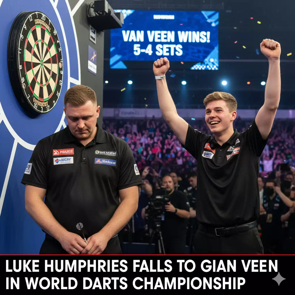 वर्ल्ड डार्ट्स चैंपियनशिप में बड़ा उलटफेर सामने आया, जब मौजूदा चैंपियन ल्यूक हम्फ्रीज़ को डच खिलाड़ी जियान वैन वीन के हाथों हार झेलनी पड़ी। इस अप्रत्याशित परिणाम ने टूर्नामेंट की दिशा बदल दी और आगे के मुकाबलों को और रोमांचक बना दिया।