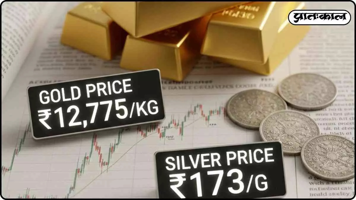 आज सोने में हल्की गिरावट और चांदी में तेजी दर्ज की गई। 24 कैरेट सोना ₹12,775/ग्राम पर, मुंबई में चांदी ₹173/ग्राम और ₹1,73,000/किलोग्राम रही। विशेषज्ञों का मानना है कि आने वाले दिनों में सोने के दाम ₹1,29,000 प्रति 10 ग्राम तक पहुंच सकते हैं।