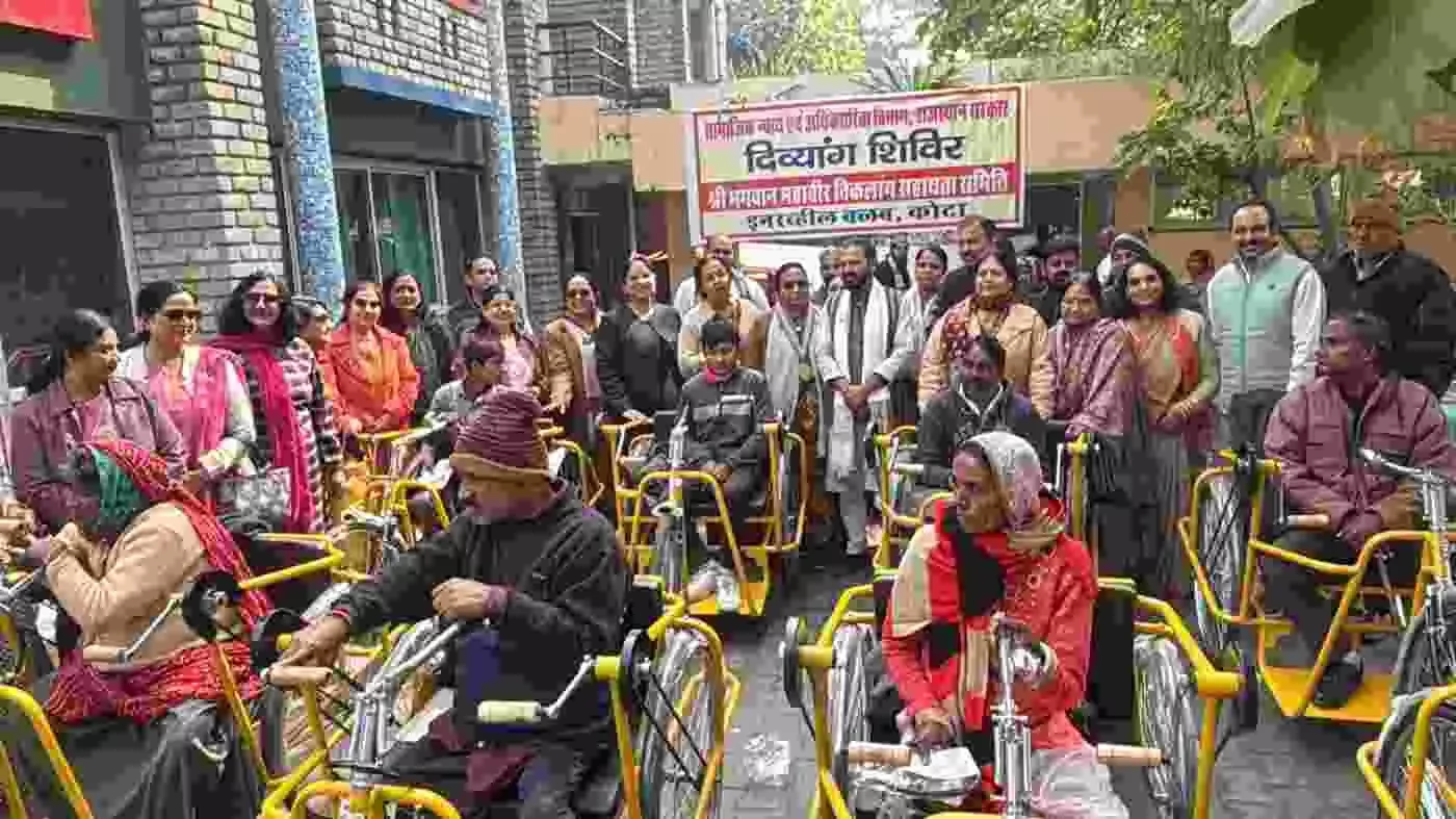कोटा में भगवान महावीर विकलांग सहायता समिति और सामाजिक न्याय विभाग द्वारा आयोजित दो दिवसीय शिविर का विधायक संदीप शर्मा ने शुभारंभ किया। शिविर में हाड़ौती संभाग के 500 से अधिक दिव्यांगों को जयपुर फुट और ट्राईसाइकिल जैसे सहायक उपकरण निशुल्क प्रदान किए जा रहे हैं। इनरव्हील क्लब के सहयोग से संचालित यह मानवीय पहल दिव्यांगों को आत्मनिर्भर बनाने और समाज की मुख्यधारा से जोड़ने का एक बड़ा कदम है।