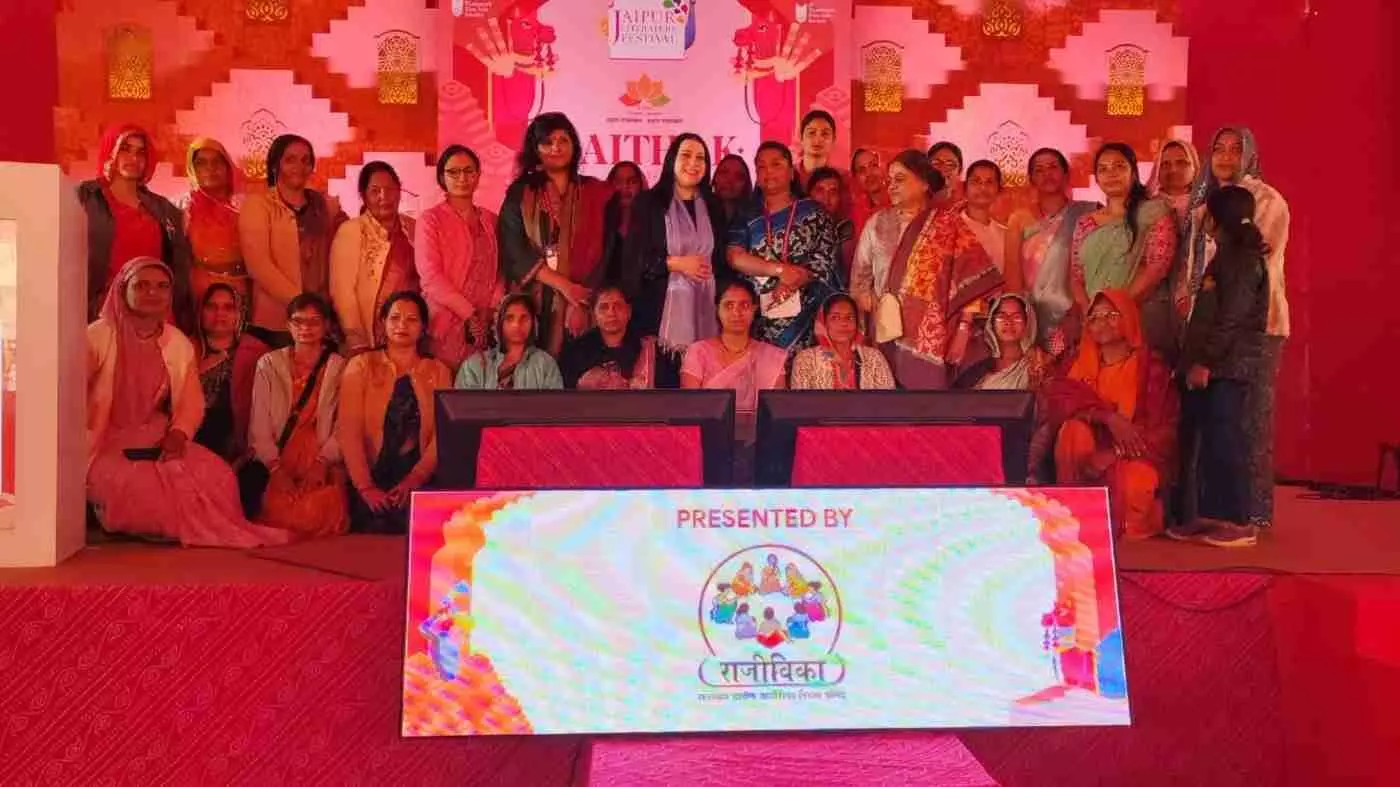 जयपुर लिटरेचर फेस्टिवल 2026 में राजीविका की ग्रामीण महिलाओं ने अपनी सशक्त उपस्थिति से दुनिया को चौंका दिया। होटल क्लार्क्स आमेर में श्रीमती श्रेया गुहा (IAS) की मौजूदगी और जनीना रामिरेज़ व नारायणी बसु के बौद्धिक संवाद के बीच स्वयं सहायता समूहों की महिलाओं ने महिला नेतृत्व वाले विकास की नई गाथा लिखी। ग्रामीण सशक्तिकरण की इस गूंज ने वैश्विक मंच पर राजस्थान का मान बढ़ाया है।