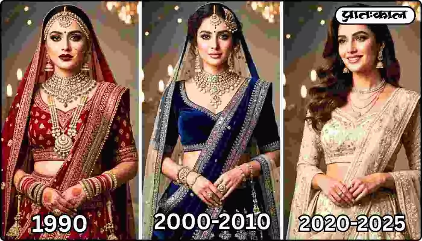 1990 से 2025 तक भारतीय ब्राइडल फैशन में हुए बदलाव का विस्तृत विश्लेषण। लाल लहंगे और भारी ज्वेलरी से लेकर मॉर्डन, पर्सनलाइज्ड और पेस्टल कलर्स तक का सफर। इस दौरान डिजाइनर लहंगे, बॉलीवुड इंस्पिरेशन और फैशन ट्रेंड्स ने दुल्हनों के स्टाइल को नया आयाम दिया।