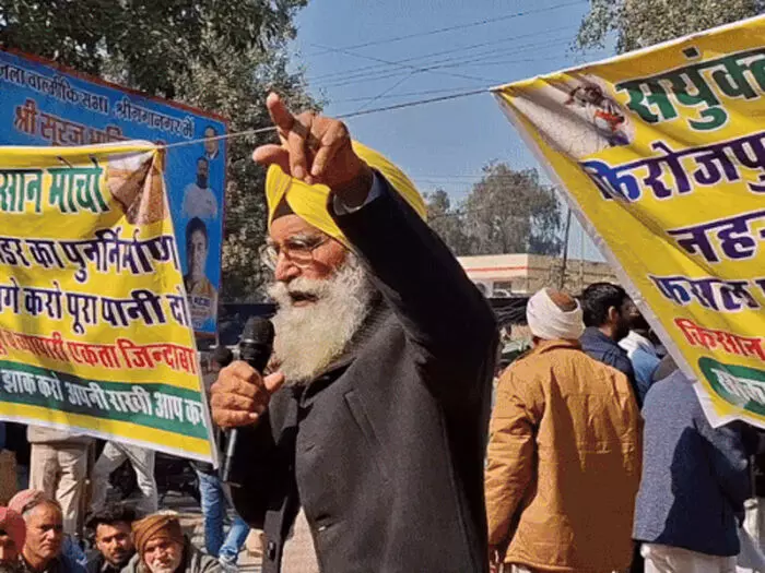 राजस्थान में श्रीगंगानगर जिले में सिंचाई और पेयजल की महत्वपूर्ण स्रोत गंगनहर को प्रभावित करने वाली प्रस्तावित पानी बंदी के विरोध में सोमवार को किसानों ने संयुक्त किसान मोर्चा के बैनर तले जिला कलेक्ट्रेट के पास महाराजा गंगासिंह चौक पर धरना दिया