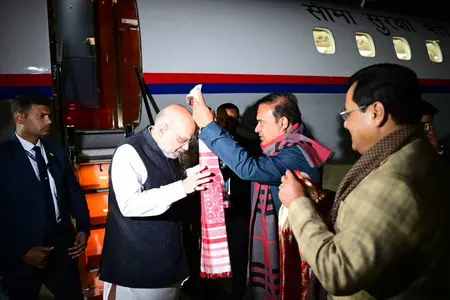 केंद्रीय गृह मंत्री अमित शाह गुरुवार रात असम के डिब्रूगढ़ पहुंचे, जहां एयरपोर्ट पर मुख्यमंत्री हिमंत बिस्वा सरमा सहित भाजपा नेताओं ने स्वागत किया