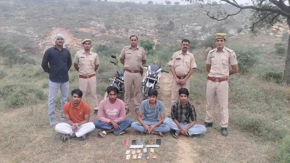 डीग पुलिस ने ऑपरेशन एंटीवायरस 2.0 के तहत ओलन्दा पहाड़ की तलहटी से चार साइबर ठगों को गिरफ्तार किया। आरोपी सेक्सटॉर्शन और ऑनलाइन ठगी के जरिए लाखों की ठगी कर रहे थे। मौके से मोबाइल, एटीएम कार्ड, सिम और मोटरसाइकिलें बरामद की गईं। एक आरोपी फरार है, जांच जारी है।