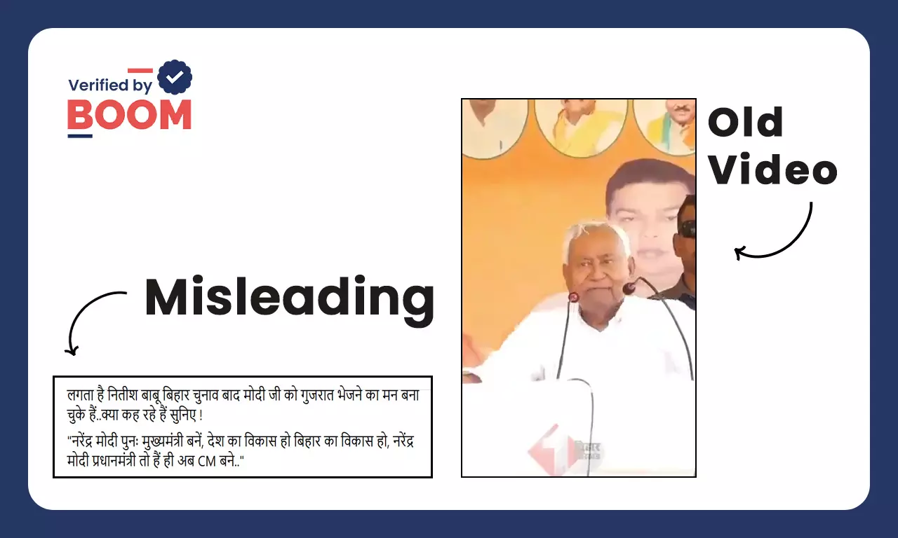 'नरेंद्र मोदी फिर सीएम बनें' कहते नीतीश कुमार का पुराना वीडियो हालिया बताकर वायरल