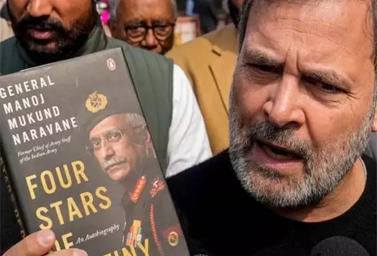पूर्व सेनाध्यक्ष मनोज मुकुंद नरवणे की किताब 'फोर स्टार्स ऑफ डेस्टिनी' पर सियासी घमासान अब सच और झूठ की परीक्षा में तब्दील हो चुका है। एक तरफ सरकार का दावा है कि यह किताब प्रकाशित ही नहीं हुई है। दूसरी तरफ राहुल गांधी इस किताब की प्रति पिछले हफ्ते ही संसद में लेकर आ गए थे और उन्होंने कहा था कि वे प्रधानमंत्री नरेन्द्र मोदी यह किताब देंगे, ताकि वे खुद उन बातों और तथ्यों को पढ़ सकें, जिन्हें लोकसभा में पढ़ने से राहुल गांधी को रोका गया। लेकिन नरेन्द्र मोदी इसके बाद लोकसभा में पहुंचे ही नहीं और न ही राहुल गांधी से उनका सामना हुआ। हालांकि यह एक अच्छा मौका नरेन्द्र मोदी के पास था, जब वे एक साथ अपनी देशभक्ति, बहादुरी और 56 इंची सीने की सच्चाई देश-दुनिया को दिखा देते। राहुल गांधी का कहना है कि नरेन्द्र मोदी एक किताब से डर गए, क्योंकि इसमें चीन के घुसपैठिया अभियान की हकीकत बयां की गई है। श्री मोदी चाहते तो राहुल गांधी से ये किताब लेकर साबित कर देते कि वे डरे हुए नहीं हैं और जो कुछ उस किताब में लिखा है उसे भी पढ़ लेते। अगर कुछ गलत लिखा है तो उसकी सच्चाई बता देते, इससे उनका ही हाथ ऊंचा होता। लेकिन बजाए इतना सीधा सा काम करने के, अब इस मामले को कानूनी पचड़े में उलझा दिया गया है। अब पूर्व सेना प्रमुख जनरल एमएम नरवणे की किताब की सॉफ्ट कॉपी के ऑनलाइन प्रसारित होने पर एफ़आईआर दर्ज की गई है। पुलिस का कहना है, 'हमने सोशल मीडिया और न्यूज प्लेटफॉर्म पर जानकारी मिलने पर जांच शुरू की। किताब पेंगुइन रैंडम हाउस इंडिया द्वारा तैयार की गई लगती है, लेकिन मंजूरी नहीं मिलने से यह अभी अप्रकाशित है। स्पेशल सेल में एफ़आईआर दर्ज की गई है और जांच चल रही है। गौरतलब है कि किताब में जनरल नरवणे ने लिखा है कि 2020 में गलवान घाटी में चीन के साथ टकराव के दौरान जब उन्होंने रक्षा मंत्री राजनाथ सिंह, एनएसए अजीत डोभाल और अन्य नेताओं को जानकारी दी कि, 'चीनी टैंक आ रहे हैं', तो लंबे समय तक कोई सीधा जवाब नहीं मिला। करीब ढाई घंटे बाद प्रधानमंत्री मोदी का संदेश आया- 'जो उचित समझो, वो करो'। राहुल गांधी इसी पर सरकार से जवाब चाह रहे हैं। हालांकि रक्षा मंत्री राजनाथ सिंह ने लोकसभा में कहा, 'मुझे यक़ीन है कि यह किताब कभी प्रकाशित नहीं हुई।' उन्होंने राहुल गांधी से कहा, 'जो किताब का दावा कर रहे हैं, उसे सदन में पेश करें, हम देखना चाहते हैं।' सरकार द्वारा ऐसी किसी किताब के छपे होने के दावे को खारिज किए जाने के बाद राहुल गांधी ने 4 फरवरी को संसद परिसर में किताब की प्रकाशित प्रति दिखाई और पत्रकारों से कहा, 'देखिए, किताब है, सरकार कह रही है कि किताब नहीं है।' बता दें कि 'फोर स्टार्स ऑफ़ डेस्टिनी' जनरल एमएम नरवणे की आत्मकथा है। जनरल नरवणे दिसंबर 2019 से अप्रैल 2022 तक सेना प