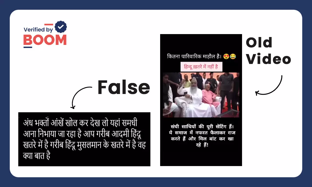 बूम ने पाया कि RSS प्रमुख मोहन भागवत का वायरल वीडियो साल 2023 का है, जब वे इमाम उमेर अहमद इलियासी के बेटे के वलीमे में शरीक हुए थे.