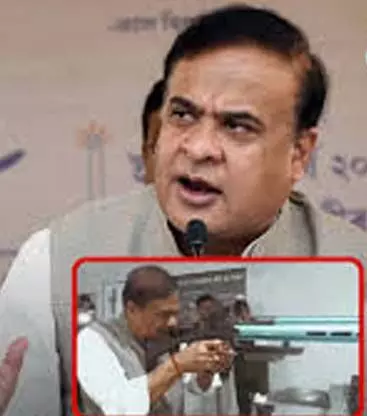 भाजपा के आधिकारिक हैंडल से प्रसारित एक वीडियो संदेश में, बिश्वशर्मा हाथों में तरह-तरह की बंदूकें/ पिस्तौलें लिए, अमरीकी फिल्मों के कॉउबाय की मुद्राओं में प्रकट ही नहीं हुए, वह अपने हथियारों से गोलियां दागते हुए दिखाई भी दिए।