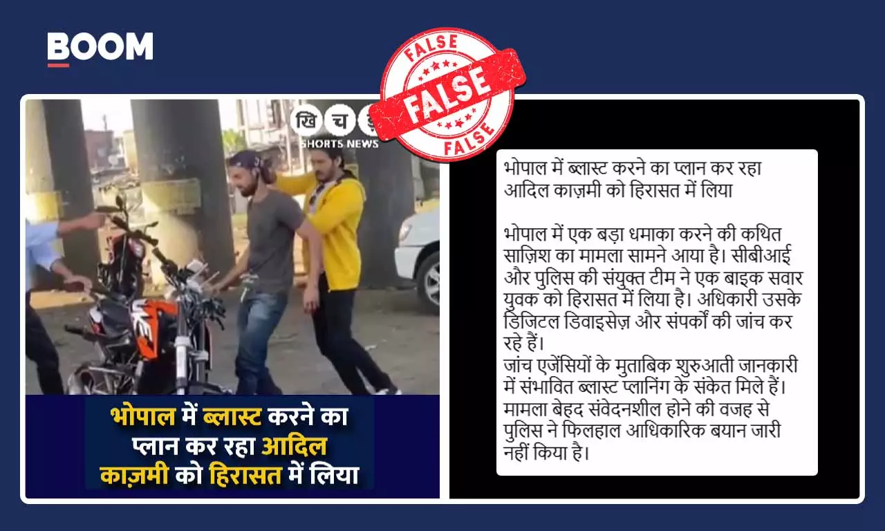 भोपाल में ब्लास्ट प्लान करने वाले आतंकी की गिरफ्तारी के दावे से शूटिंग का वीडियो वायरल