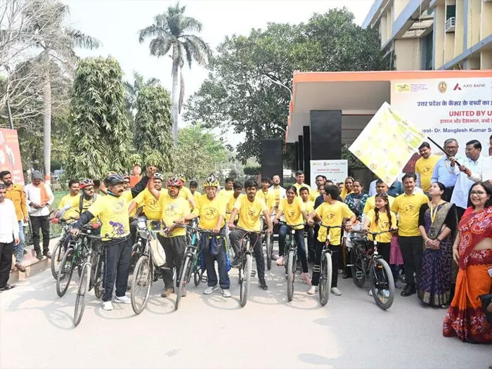 यूपी: गोरखपुर के मेयर ने बाल कैंसर जागरूकता के लिए निकली साइकिल रैली में लिया भाग
