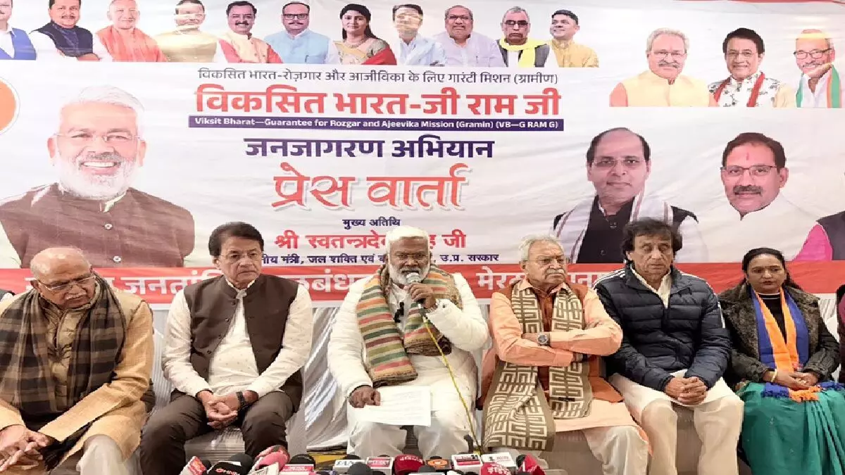 प्रदेश सरकार के जल शक्ति मंत्री स्वतंत्र देव सिंह ने कहा यूपीए सरकार में मनरेगा के नाम पर लूट होती थी। मजदूरों को समय पर मजदूरी का भुगतान नहीं होता था। उन्होंने कहा कि मोदी सरकार की जीरामजी अधिनियम से श्रमिकों को 125 दिन रोजगार मिलेगा और सात दिन में मजदूरी का भुगतान किया जाएगा। मनरेगा में होने वाली लूट बंद होने के कारण विपक्ष जीरामजी अधिनियम का विरोध कर रहा है। लेकिन जनता अब जान गईं है अब विपक्ष के बहकावे में आने वाली नहीं है। भारतीय जनता पार्टी मेरठ महानगर ने एस जी एम गार्डन में विकसित भारत-जी राम जी बिल के उपलक्ष्य में एक प्रेस वार्ता का आयोजन किया। स्वतंत्र देव सिंह ने कहा कि भारत की आत्मा गांव में बसती है और गांव की आत्मा मजदूर, किसान और मेहनतकश परिवारों में बसती है। उन्होंने कहा कि कहा कि कांग्रेस सरकार में मनरेगा का क्या हाल था, यह किसी से छिपा नहीं है। उन्होंने कहा कि कांग्रेस के समय मनरेगा में 2 लाख 13 हजार 220 करोड़ रुपए खर्च किए गए थे, जबकि एनडीए की सरकार ने 8 लाख 53 हजार 810 करोड़ रुपए खर्च किए। उन्होंने कहा कि मोदी सरकार ने मजदूर को कभी छोड़ा नहीं, बल्कि उन्हें आगे बढ़ाया है।विकसित भारत-जी राम जी अधिनियम के प्रमुख लाभों के बारे में बताते हुए कहा कि अब हर ग्रामीण परिवार को वर्ष में 125 दिनों का सुनिश्चित रोजगार मिलेगा। उन्होंने कहा कि इस अधिनियम में मजदूरी के लिए 15 दिनों की प्रतीक्षा नहीं करनी होगी, बल्कि मजदूर की मेहनत का मूल्य साप्ताहिक भुगतान के रूप में, सीधे उसके बैंक खाते में समय पर और पूरी पारदर्शिता के साथ पहुंचेगा। कांग्रेस सरकार में क्या होता था? स्वतंत्र देव सिंह ने कहा कि कांग्रेस सरकार में मनरेगा का क्या हाल था, यह किसी से छिपा नहीं है। उन्होंने कहा कि कांग्रेस के समय मनरेगा में 2 लाख 13 हजार 220 करोड़ रुपए खर्च किए गए थे, जबकि एनडीए की सरकार ने 8 लाख 53 हजार 810 करोड़ रुपए खर्च किए। उन्होंने कहा कि कांग्रेस सरकार में मजदूर को कभी सम्मान नहीं दिया गया, बल्कि उन्हें केवल वोट बैंक के रूप में देखा गया। विकसित भारत-जी राम जी अधिनियम के प्रमुख लाभ - हर ग्रामीण परिवार को वर्ष में 125 दिनों का सुनिश्चित रोजगार मिलेगा।- मजदूरी के लिए 15 दिनों की प्रतीक्षा नहीं करनी होगी।- मजदूर की मेहनत का मूल्य साप्ताहिक भुगतान के रूप में, सीधे उसके बैंक खाते में समय पर और पूरी पारदर्शिता के साथ पहुंचेगा।- बुआई-कटाई के महत्वपूर्ण 60 दिनों हेतु कार्य विराम का प्रावधान किया गया है, ताकि किसानों को समय पर मजदूर उपलब्ध हों और खेती की गति कभी न रुके।- वन क्षेत्रों में कार्य करने वाले आदिवासी श्रमिक भाइयों-बहनों को विशेष रूप से ध्यान में रखते हुए, उन्हें 25 दिनों का अतिरिक्त रोजगार प्रदान किया गया है। इस अवसर पर ,जिला 