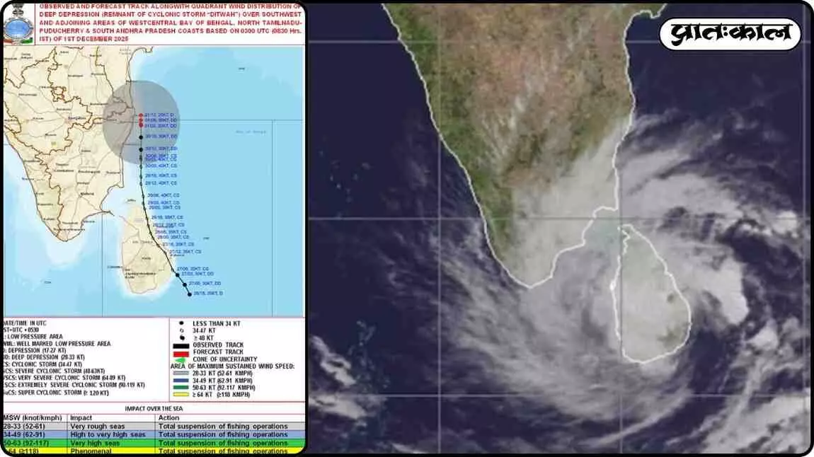 चक्रवात दितवाह का कहर: IMD ने जारी किए अलर्ट, तमिलनाडु और दक्षिणी आंध्र प्रदेश में तूफानी चेतावनी