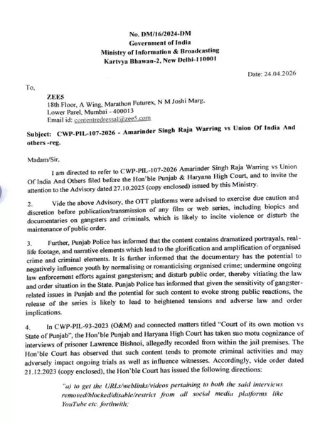 27 अप्रैल को ZEE5 पर रिलीज होने वाले लॉरेंस ऑफ पंजाब डॉक्यूमेंट्री को लेकर अब पुलिस एक्शन में आ गई है। इस संबंध में केंद्र सरकार को पत्र लिखा गया है। साइबर क्राइम शाखा ने केंद्र सरकार को पत्र लिखकर कहा कि कि फिल्म के प्रसारण पर रोक लगाई जाए। सूचना प्रौद्योगिकी अधिनियम की धारा 69A(1) लागू करने की मांग की है। यह धारा सरकार को संप्रभुता, सुरक्षा और सार्वजनिक व्यवस्था के हित में ऑनलाइन कंटेंट ब्लॉक करने का अधिकार देती है। वहीं, इस मामले में कांग्रेस प्रधान अमरिंदर सिंह राजा वड़िंग ने प्रधानमंत्री नरेंद्र मोदी को पत्र लिखकर रोक लगाने की मांग की है। ट्रेलर को वैश्विक स्तर पर ब्लॉक करने की भी मांग पुलिस ने इस सीरीज़ के ट्रेलर को वैश्विक स्तर पर ब्लॉक करने की भी मांग की है। उनका कहना है कि इससे सार्वजनिक व्यवस्था पर असर पड़ सकता है, युवाओं में कट्टरपंथ बढ़ सकता है और संगठित अपराध के खिलाफ चल रही कार्रवाई प्रभावित हो सकती है। समाज में अपराध का महिमामंडन करती है वेब सीरिज: वड़िंग वड़िंग ने पीएम को लिखे पत्र में चिंता व्यक्त की है कि यह वेब सीरीज समाज में अपराध का महिमामंडन करती है। उन्होंने तर्क दिया कि गैंगस्टर लॉरेंस बिश्नोई के जीवन पर आधारित इस तरह की सामग्री न केवल युवाओं को गलत संदेश देती है, बल्कि पंजाब की शांति और सुरक्षा के लिए भी खतरा पैदा कर सकती है। वड़िंग ने लिखा कि मैं आपसे अनुरोध करता हूं कि कृपया सूचना एवं प्रसारण मंत्रालय और सूचना प्रौद्योगिकी मंत्रालय को इस वेब सीरीज की रिलीज पर रोक लगाने के निर्देश जारी करें। ऐसी सामग्री समाज में हिंसा और अपराधीकरण को बढ़ावा देती है। पंजाब पुलिस द्वारा लिखे गए पत्र को अब 2 प्वाइंट में जानिए -1. जांच पर असर पड़ सकता हैसाइबर क्राइम की स्पेशल डीजीपी वी. नीरजा ने इस बारे में केंद्र सरकार को पत्र लिखकर कहा है कि इस सीरीज में गैंगस्टर लॉरेंस बिश्नोई की जिंदगी और उसके अपराधों को दिखाया गया है। इसमें सिद्धू मूसेवाला की हत्या जैसे बड़े मामलों का भी जिक्र है। पुलिस का कहना है कि ऐसी सीरीज से अपराध को बढ़ावा मिल सकता है और खासकर युवाओं पर गलत असर पड़ सकता है। इससे अपराध को सामान्य या आकर्षक दिखाया जा सकता है, जिससे कानून-व्यवस्था पर असर पड़ सकता है और चल रही जांच भी प्रभावित हो सकती है। 2. इंटरनेट पर जल्दी केस फैलता है पुलिस ने आईटी एक्ट की धारा 69A के तहत मांग की है कि इस सीरीज को रिलीज न किया जाए और इसका ट्रेलर भी हटाया जाए। पंजाब और हरियाणा हाईकोर्ट भी पहले ऐसे मामलों पर चिंता जता चुका है और कह चुका है कि इस तरह की सामग्री से अपराध को बढ़ावा मिल सकता है। अधिकारियों का कहना है कि इंटरनेट पर ऐसे वीडियो जल्दी फैलते हैं और लोगों पर ज्यादा असर डालते हैं। फिलहाल इ