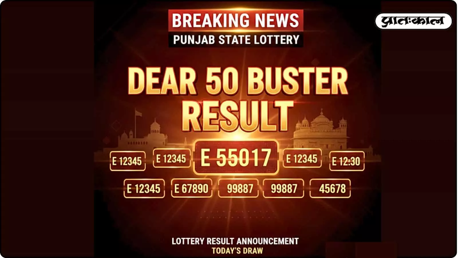 Punjab State Dear 50 Buster Weekly Lottery (18 फरवरी 2026) के नतीजे घोषित! टिकट नंबर E 55017 ने जीता ₹15 लाख का प्रथम पुरस्कार। ₹9000 से ₹100 तक के हजारों अन्य विजेताओं की पूरी सूची और विस्तृत पुरस्कार संरचना यहाँ देखें। पंजाब राज्य लॉटरी के पारदर्शी और विश्वसनीय परिणामों की पूरी जानकारी एक ही क्लिक पर।