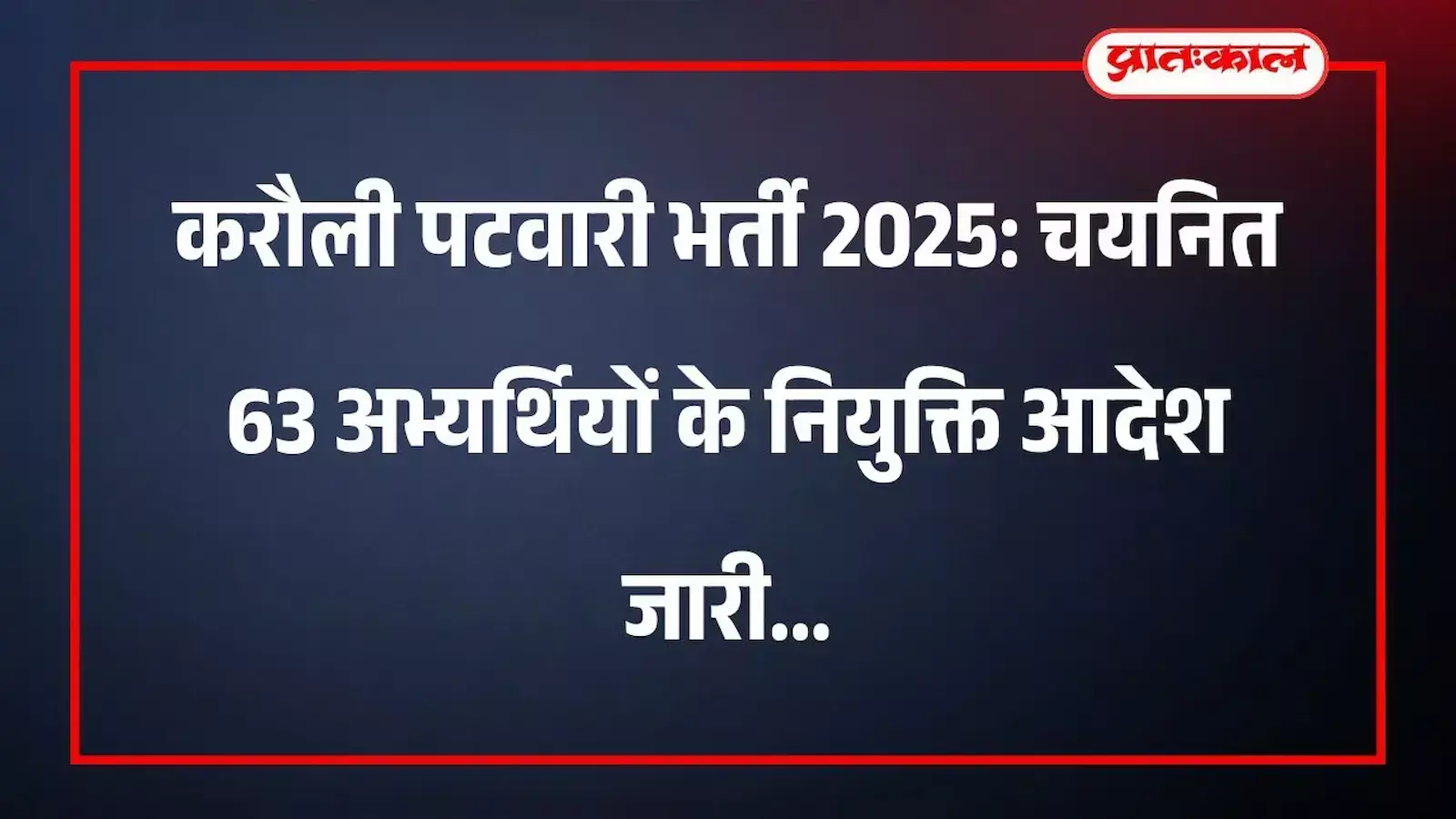 करौली पटवारी भर्ती 2025: चयनित 63 अभ्यर्थियों के नियुक्ति आदेश जारी