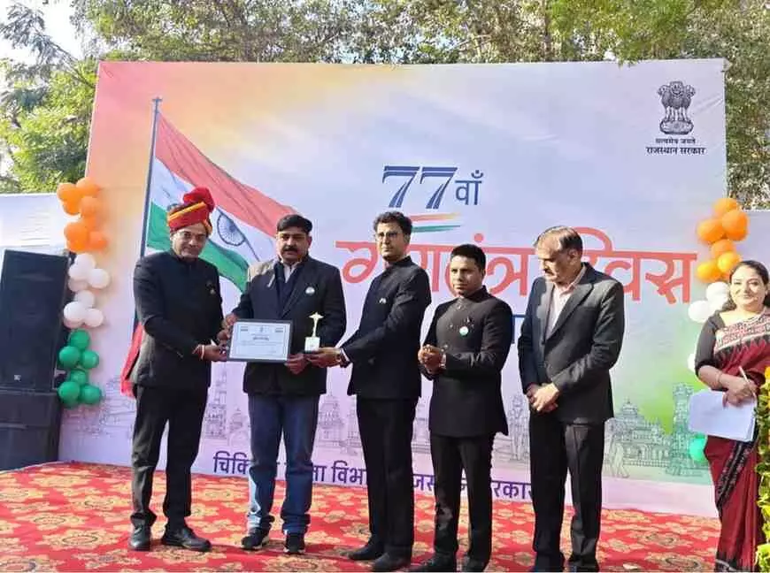 चित्तौड़गढ़ में आयोजित 77वें जिला स्तरीय गणतंत्र दिवस समारोह में बेगूं उपखंड अधिकारी अंकित सामरिया को उनकी उत्कृष्ट कार्यप्रणाली और SIR अभियान की सफलता के लिए सम्मानित किया गया। सहकारिता राज्य मंत्री गौतम दक और सांसद सी.पी. जोशी की उपस्थिति में मिले इस सम्मान से बेगूं में गौरव का माहौल है। पढ़ें प्रशासनिक कुशलता और समर्पण की यह विशेष रिपोर्ट।