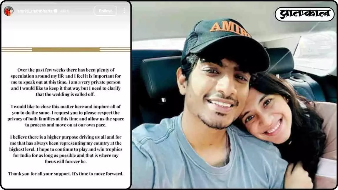 स्मृति मंधाना ने शादी स्थगित होने के बाद पहली बार इंस्टाग्राम पर ब्रांड एड पोस्ट साझा किया, जिसमें उनकी उंगली से इंगेजमेंट रिंग गायब नजर आई। इस रिंग-रहित पोस्ट ने फैंस में चिंता और सवाल खड़े कर दिए, सोशल मीडिया पर फिर से चर्चा का केंद्र बन गई।