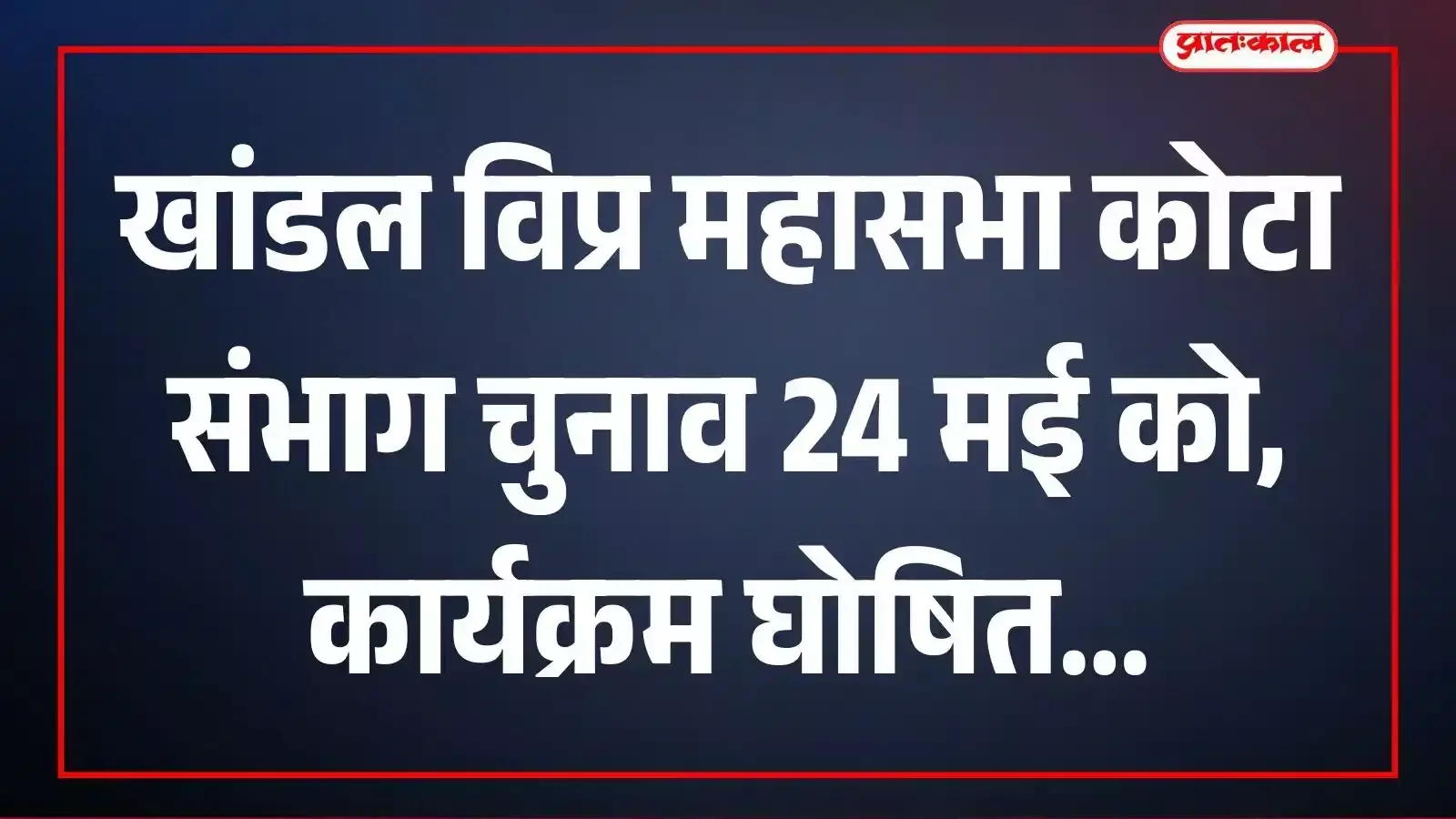 खांडल विप्र महासभा कोटा संभाग चुनाव 24 मई को, कार्यक्रम घोषित