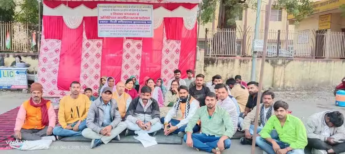 सुरक्षा कर्मियों का नोहर पंचायत समिति के समक्ष अनिश्चितकालीन धरना आठवें दिन भी जारी