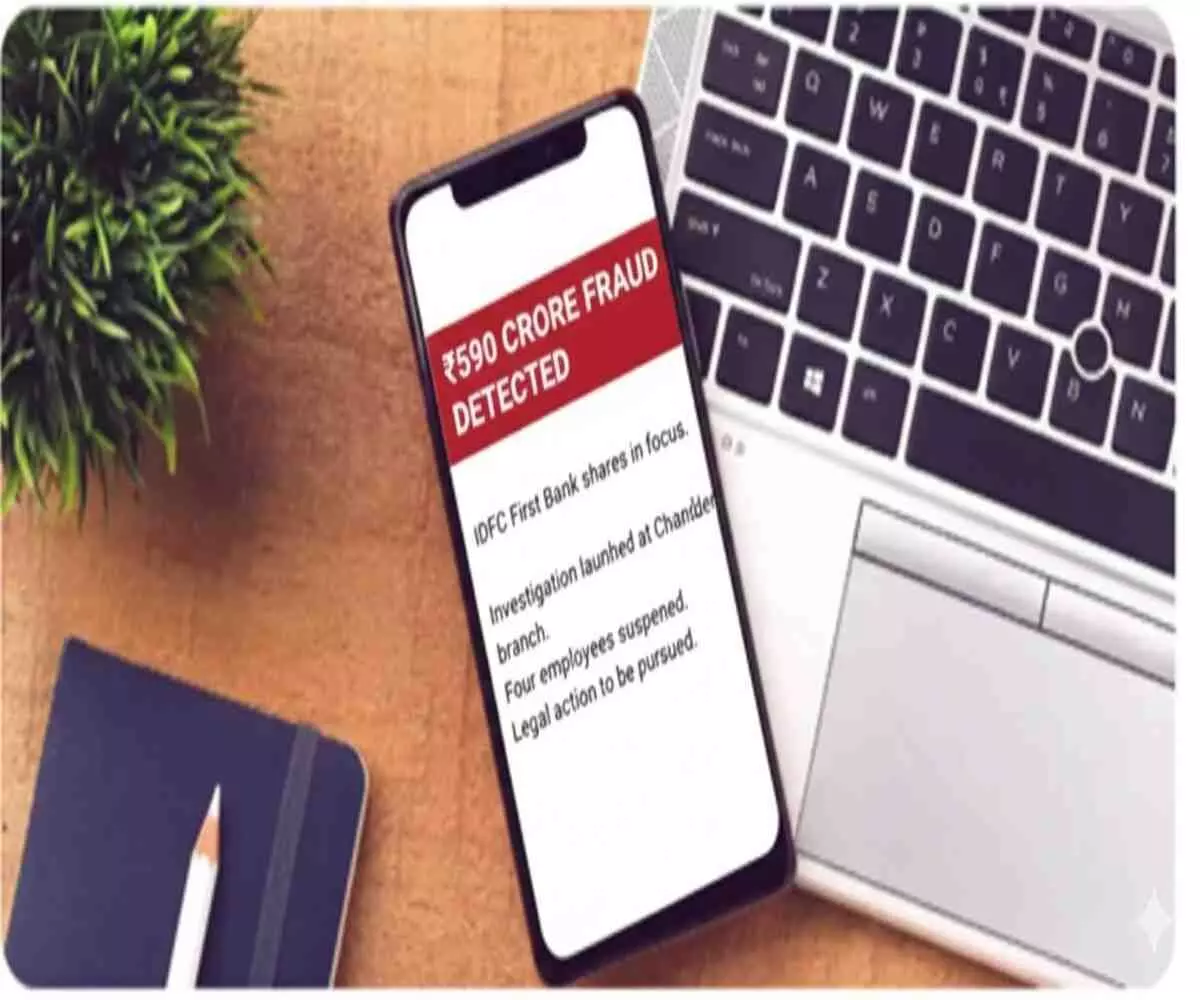 IDFC First Bank ने अपनी चंडीगढ़ शाखा में ₹590 करोड़ की धोखाधड़ी का पता लगाया है। हरियाणा सरकार के खातों में विसंगतियां मिलने के बाद बैंक ने 4 अधिकारियों को सस्पेंड कर दिया है। जानिए इस खबर का बैंक के शेयरों और निवेशकों पर क्या असर होगा।