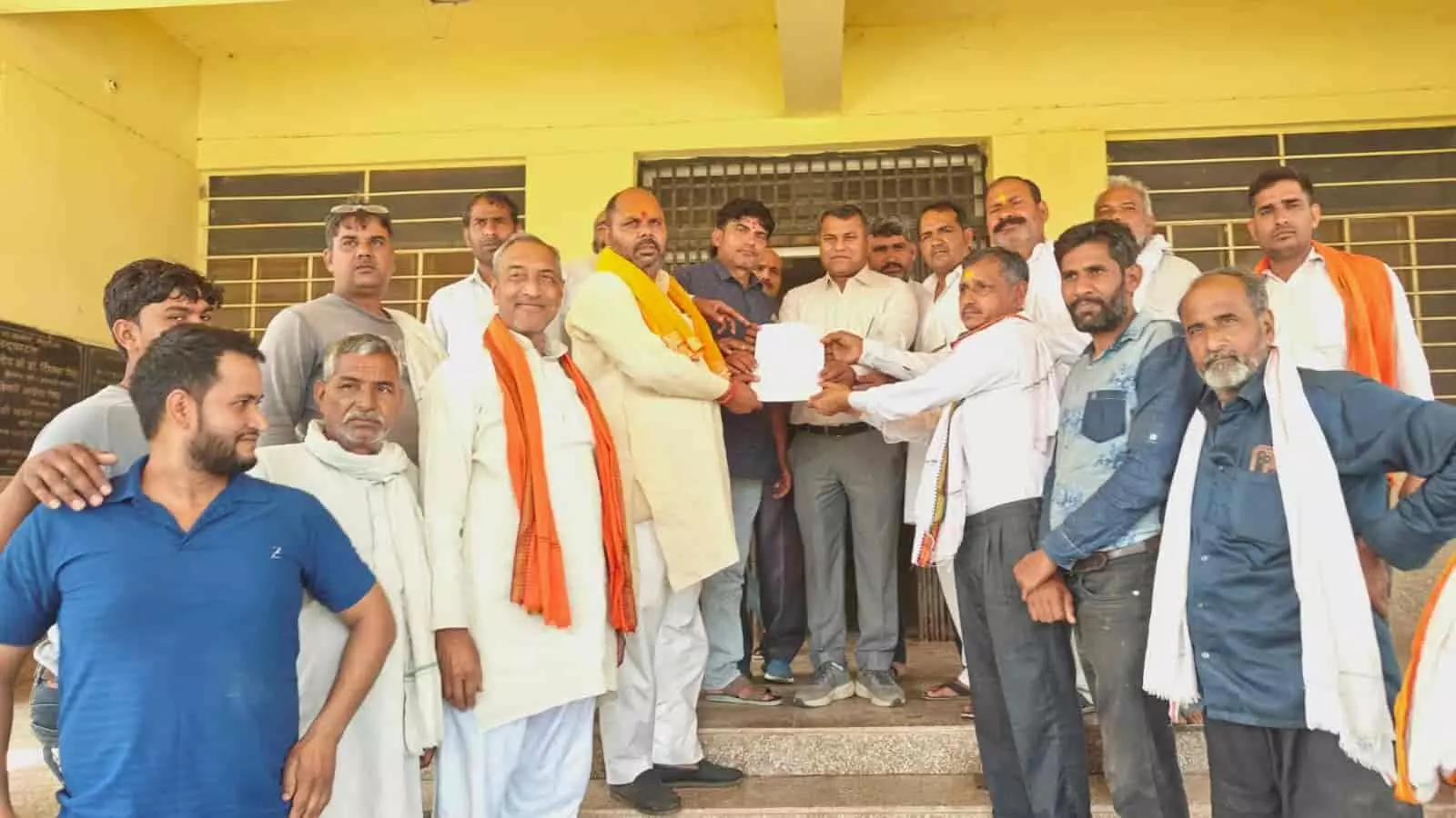 मेघवाल धर्मशाला के पीछे स्थित मंदिर में श्रीमद्भागवत कथा और कलश यात्रा का होगा आयोजन, पीले चावल बांटकर श्रद्धालुओं को दिया गया निमंत्रण।