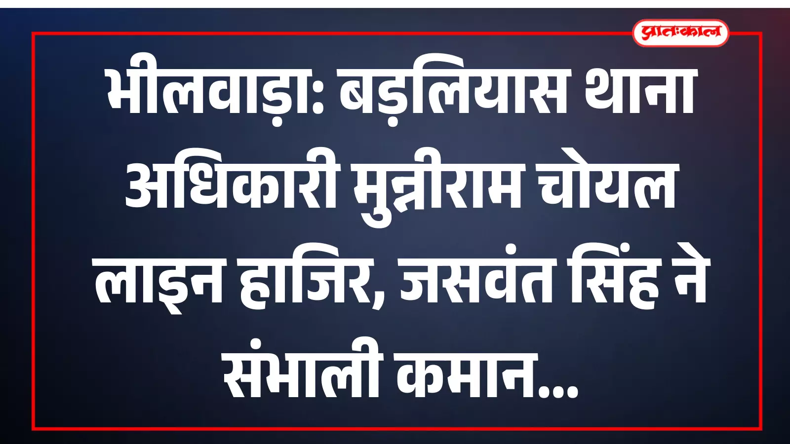 भीलवाड़ा: बड़लियास थाना अधिकारी मुन्नीराम चोयल लाइन हाजिर, जसवंत सिंह ने संभाली कमान