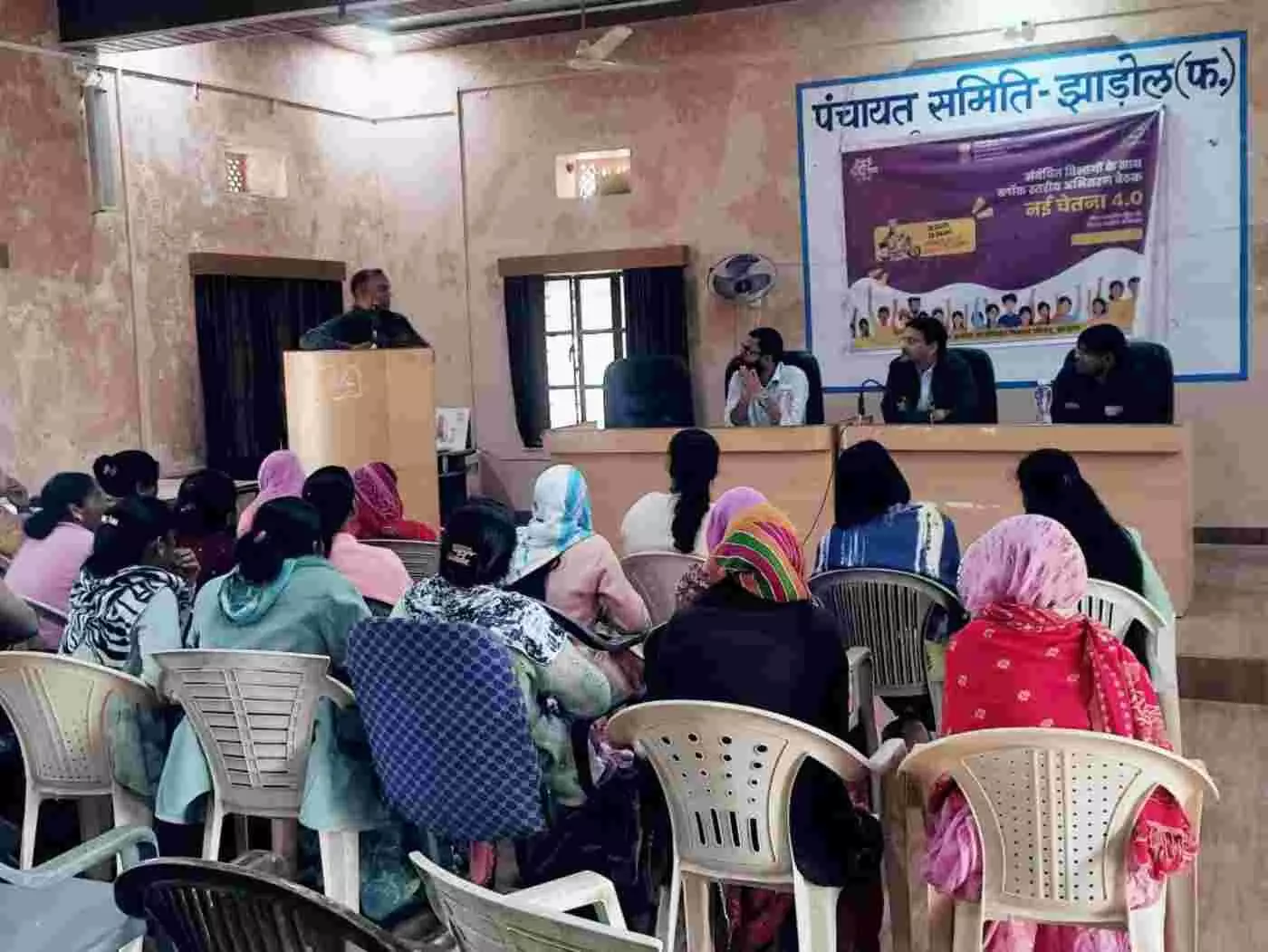 झाड़ोल और फलासिया ब्लॉक में आयोजित ब्लॉक स्तरीय अभिसरण बैठक में ‘पहल बदलाव की नई चेतना 4.0’ कार्यक्रम का प्रभावी आगाज। अधिकारियों ने महिलाओं के सशक्तिकरण, सामाजिक व आर्थिक पहचान और विभागीय योजनाओं में उनकी भागीदारी सुनिश्चित करने की शपथ ली।