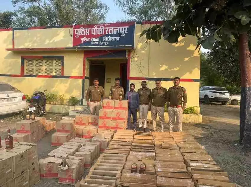 डूंगरपुर के बिछीवाड़ा थाना पुलिस ने रतनपुर बॉर्डर पर 6.5 लाख रुपए मूल्य की अवैध अंग्रेजी शराब जप्त की और एक आरोपी संदीप वाल्मीकि को गिरफ्तार किया। ट्रक में छिपाए गए 695 बोतल हरियाणा निर्मित शराब को आभकारी अधिनियम के तहत जब्त किया गया।