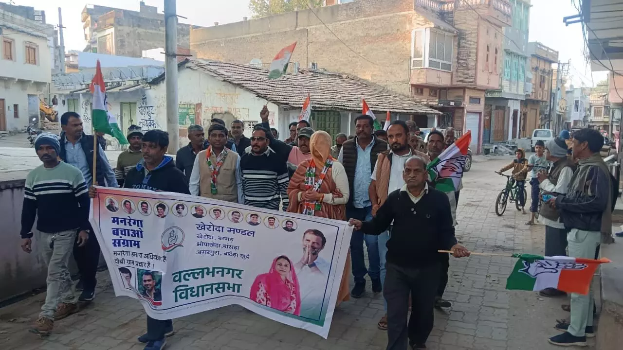 डीग जिले में कांग्रेस का 'मनरेगा बचाओ जनांदोलन' तेज हो गया है। जिलाध्यक्ष राजीव सिंह चौधरी के नेतृत्व में कांग्रेस ने भाजपा सरकार पर पंचायतों की शक्तियां ठेकेदारों को सौंपने और ग्रामीण अर्थव्यवस्था को बर्बाद करने का आरोप लगाया है। डॉ. मनमोहन सिंह द्वारा लागू किए गए मनरेगा को बचाने और गरीबों के हक के लिए सड़कों पर उतरे दिग्गज नेताओं की पूरी रिपोर्ट यहाँ पढ़ें।