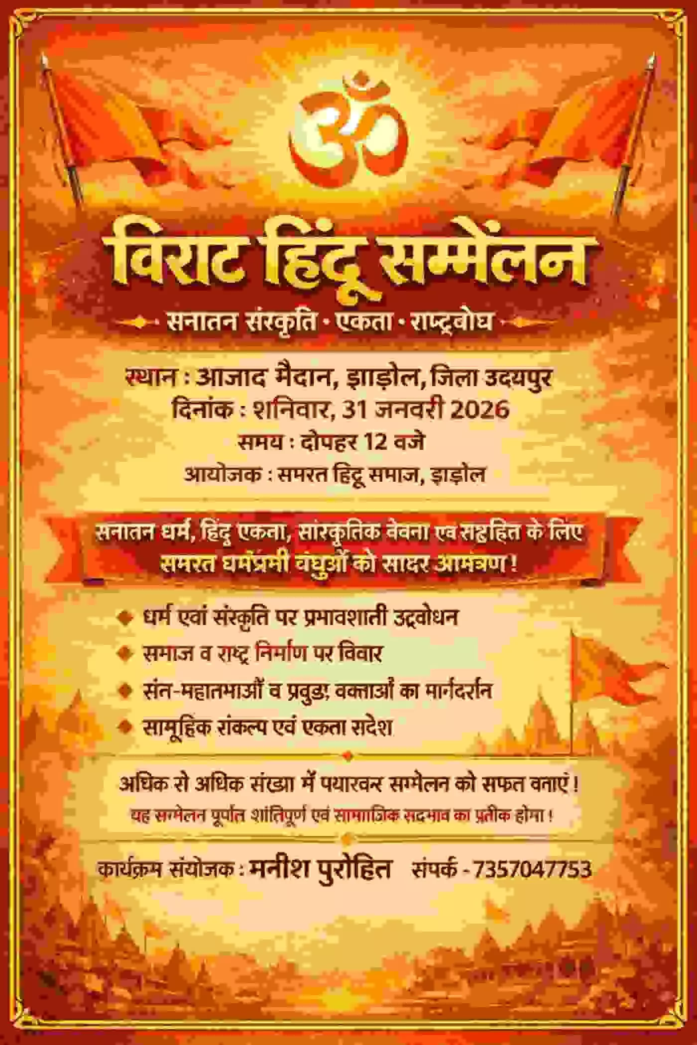 भूपालसागर के बड़ले वाले बालाजी मंदिर में शिव परिवार प्राण-प्रतिष्ठा व ध्वज कलश स्थापना की तैयारियों को लेकर 11 जनवरी को सर्वसमाज की बड़ी बैठक होगी। पूज्य संत श्री अनुजदास जी महाराज के सान्निध्य में भटनागर चौक से भव्य शोभायात्रा निकाली जाएगी। आयोजन समिति ने प्रत्येक घर से उपस्थिति अनिवार्य की है। पढ़िए इस भव्य धार्मिक आयोजन की पूरी रूपरेखा।