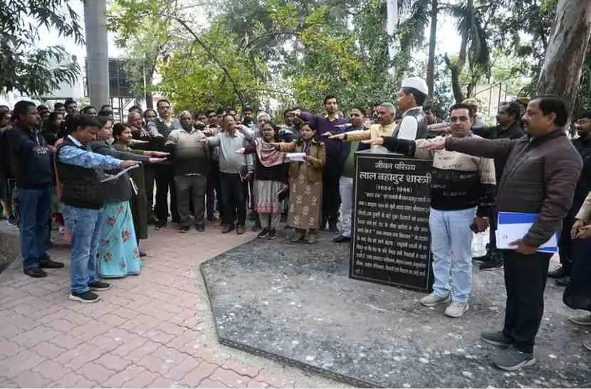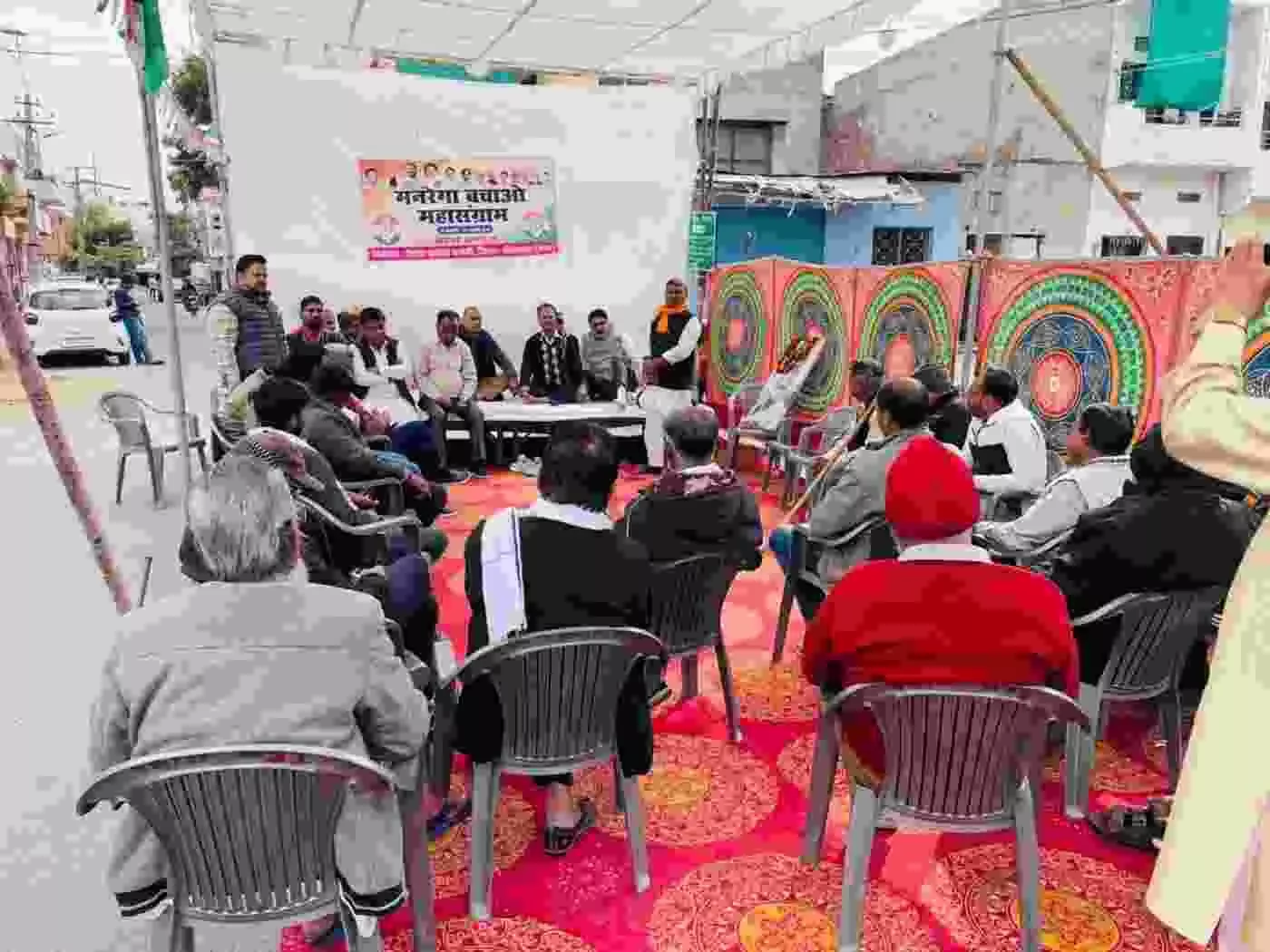 भीलवाड़ा में केंद्र सरकार की जनविरोधी नीतियों और मनरेगा को कमजोर करने की साजिश के खिलाफ जिला कांग्रेस कमेटी (शहर) महेश मंडल ने जोरदार धरना-अनशन किया। जिलाध्यक्ष शिवराम जीपी खटीक के नेतृत्व में नेताओं ने मनरेगा को गरीबों का सुरक्षा कवच बताते हुए सड़क से संसद तक लड़ाई का एलान किया। इस ऐतिहासिक प्रदर्शन में भीलवाड़ा कांग्रेस के सभी दिग्गज नेताओं और कार्यकर्ताओं ने एकजुट होकर हुंकार भरी।