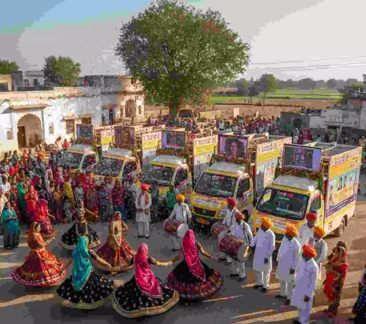 सुमेरपुर में 'विकास रथ यात्रा' का भव्य स्वागत, मंत्री जोराराम कुमावत ने ग्रामीणों को योजनाओं की जानकारी दी। पंचायतों के छोटे दायरे और किसानों को 9,000 रुपए सम्मान निधि समेत 70 लाख परिवारों को आयुष्मान भारत योजना का लाभ पहुंचाने की जानकारी साझा की गई।