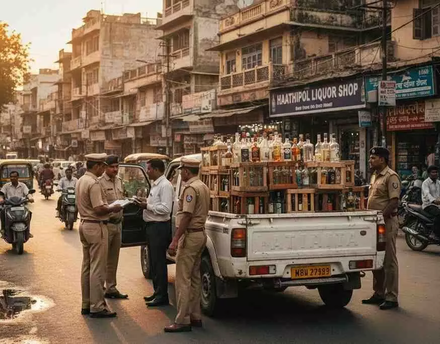 उदयपुर में स्पेशल टीम ने नाड़ाखाड़ा चौराहे पर शराब से भरी पिकअप पकड़ी। 22 पेटी शराब बलीचा गोदाम से हाथीपोल दुकान ले जाई जा रही थी। दस्तावेज़ सत्यापन के बाद पुलिस ने पिकअप और चालक को छोड़ दिया। मामला पुलिस सतर्कता और वैध शराब परिवहन की अहमियत को उजागर करता है।