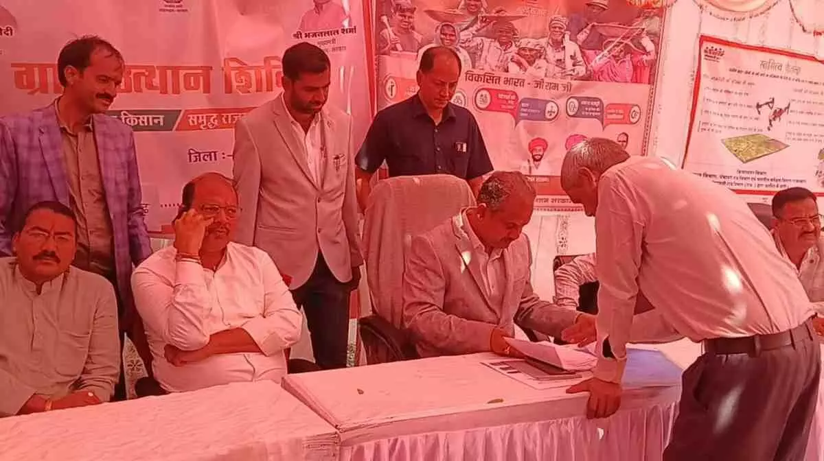 सवाई माधोपुर के भाड़ौती में आयोजित 'ग्राम उत्थान शिविर 2026' में जिला प्रभारी सचिव शिवांगी स्वर्णकार ने शिरकत की। शिविर में कृषि, पशुपालन और सौर ऊर्जा से जुड़ी दर्जनों योजनाओं का लाभ मौके पर ही पात्र ग्रामीणों को दिया गया। जिला कलक्टर काना राम सहित आला अधिकारियों की मौजूदगी में तारबंदी और सौर पंप जैसी योजनाओं की तत्काल स्वीकृति दी गई, जिससे ग्रामीण विकास को नई गति मिली है।