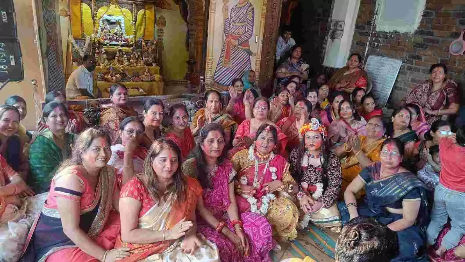 अग्रवाल महिला मंडल द्वारा आयोजित कार्यक्रम में राधा-कृष्ण भजनों के साथ फूलों की होली खेली गई और भाईचारे का संदेश दिया गया।