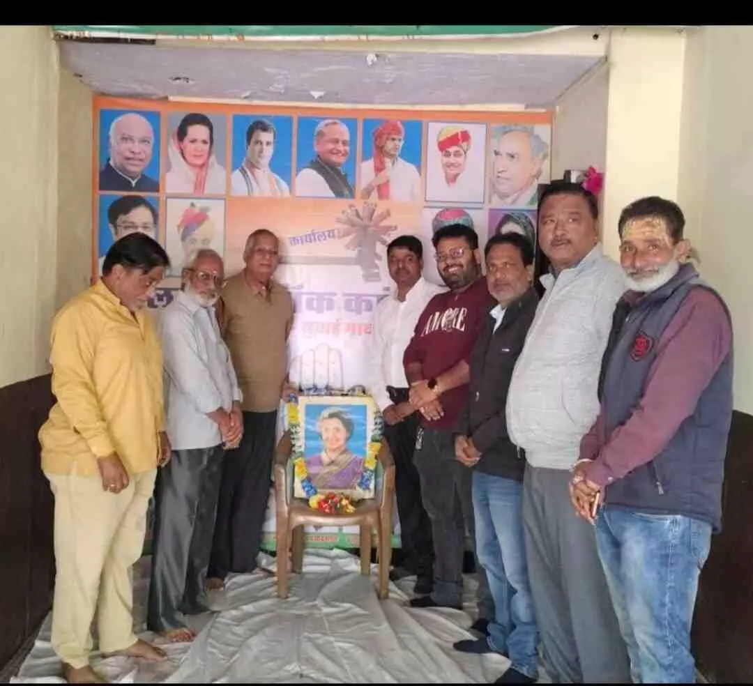 सवाई माधोपुर कांग्रेस कार्यालय में स्वर्गीय श्रीमती इंदिरा गांधी की जयंती पर कार्यकर्ताओं ने पुष्प और माला अर्पित कर श्रद्धांजलि दी। जिला अध्यक्ष गिर्राज सिंह गुर्जर ने उनके साहस, नेतृत्व और 'आयरन लेडी' के रूप में विश्व प्रसिद्ध योगदान को याद किया। समारोह ने नारी सशक्तिकरण और देश सेवा का संदेश भी प्रस्तुत किया।