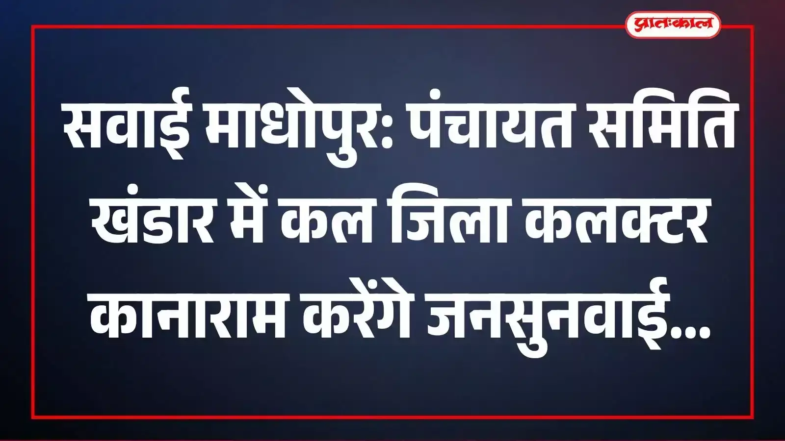 सवाई माधोपुर: पंचायत समिति खंडार में कल जिला कलक्टर कानाराम करेंगे जनसुनवाई