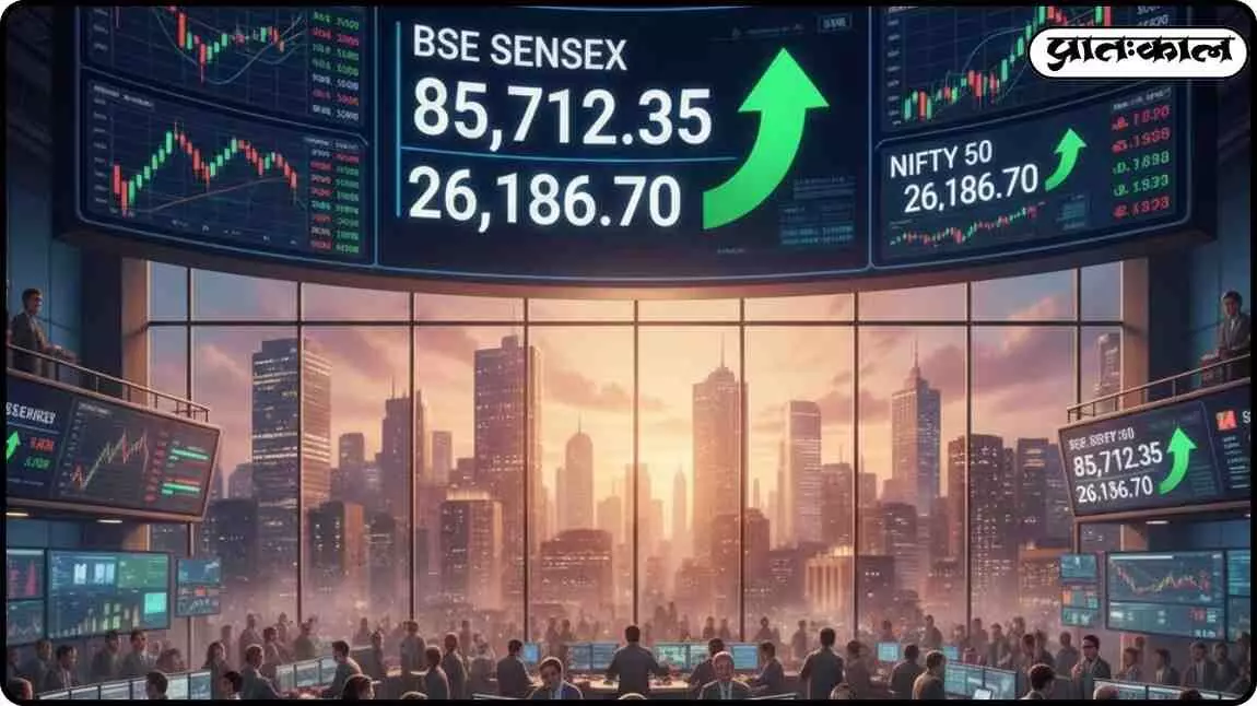5 दिसंबर 2025 को RBI की रेपो रेट कटौती के बाद, Sensex 85,712.37 और Nifty 26,186.45 पर बंद हुए। बैंकिंग, ऑटो, मेटल और IT शेयरों में जोरदार तेजी देखी गई। बाजार के रुख और निवेश के अवसरों पर विस्तृत रिपोर्ट।