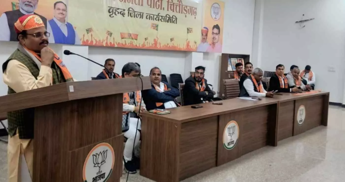 बेगू पंचायत समिति सभागार में पूर्व जिला मंत्री सत्यनारायण मेनारिया के मुख्य आतिथ्य में भाजपा की महत्वपूर्ण बैठक आयोजित हुई। बैठक में SIR से संबंधित विषयों और सांगठनिक मजबूती पर चर्चा की गई, जिसमें शंभू लाल धाकड़, विदुषी जी और सीपी जोशी सहित बड़ी संख्या में भाजपा पदाधिकारी एवं कार्यकर्ता उपस्थित रहे। आगामी कार्ययोजनाओं पर मंथन के साथ कार्यकर्ताओं में दिखा भारी उत्साह।