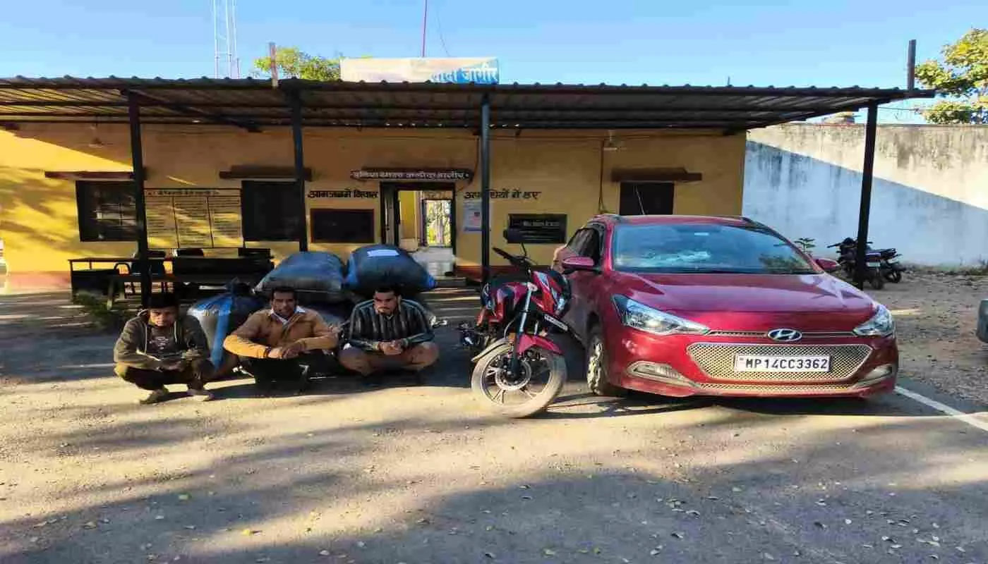 चित्तौड़गढ़ में बेगूं थाना पुलिस और ए.एन.टी.एफ. कोटा की संयुक्त कार्रवाई में स्विफ्ट कार से 15 किलो 300 ग्राम अवैध गांजा बरामद कर तीन तस्करों को गिरफ्तार किया गया। आरोली टोल पर हुई इस कार्रवाई में मोहम्मद अली, इमरान और करीम बक्श को एनडीपीएस एक्ट के तहत गिरफ्तार कर आगे की जांच जारी है।