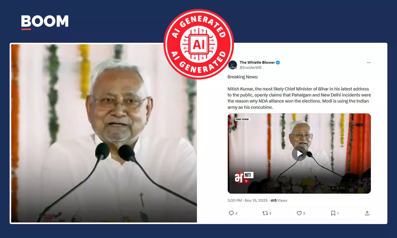 सोशल मीडिया पर वायरल जनरल उपेंद्र द्विवेदी का वीडियो पूरी तरह फर्जी पाया गया। PIB की फैक्ट-चेक यूनिट ने स्पष्ट किया कि यह AI-जनित वीडियो है और न तो थलसेना प्रमुख ने ऐसा कोई बयान दिया, न ही सरकार ने कोई आदेश जारी किया। सरकार ने नागरिकों से अपील की है कि भ्रामक सूचनाओं से सतर्क रहें और केवल आधिकारिक स्रोतों पर भरोसा करें।