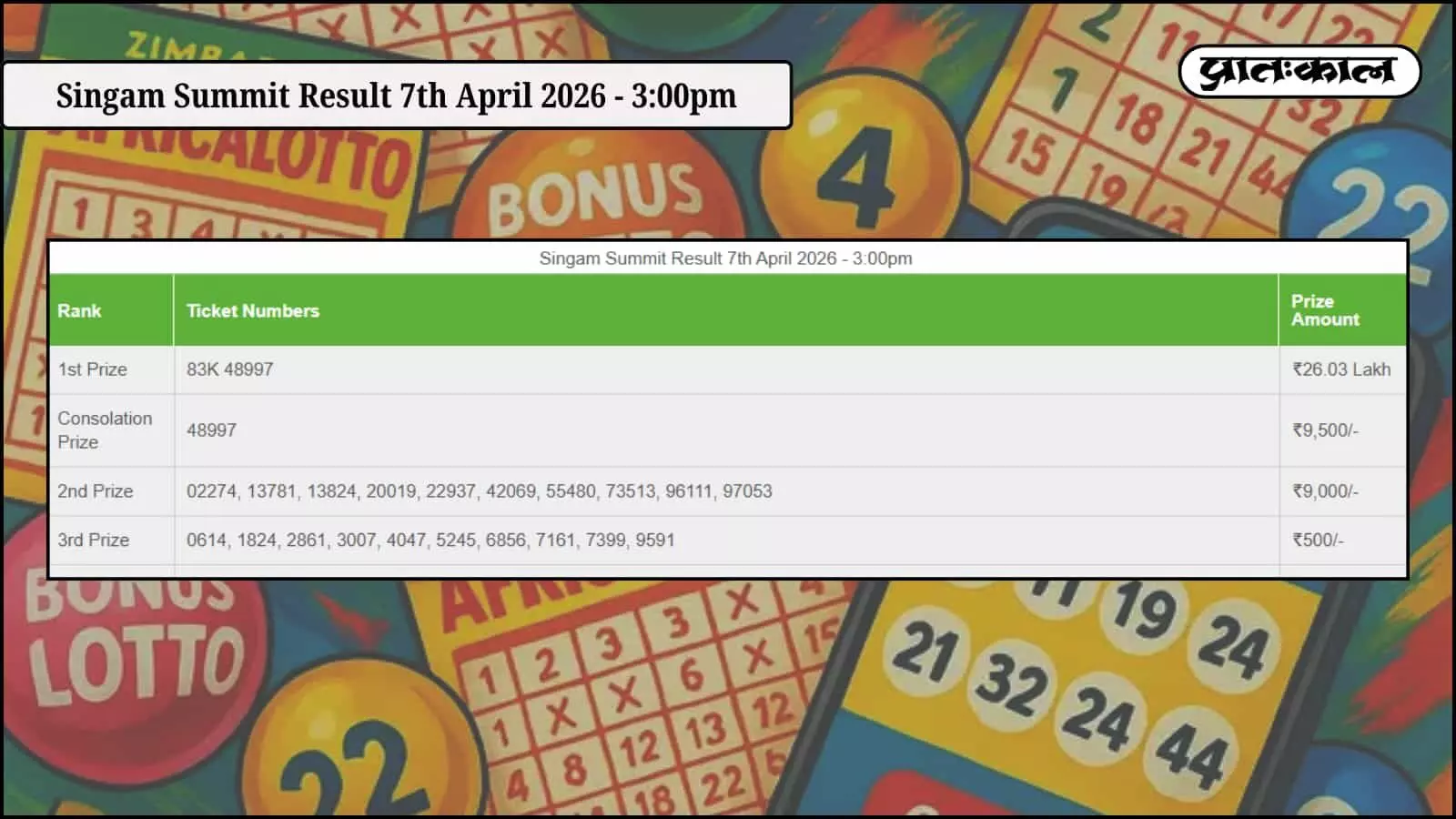 Singam Summit Lottery Result 7 अप्रैल 2026 रिजल्ट जारी, 83K 48997 नंबर ने जीते ₹26.03 लाख, जानें सभी विजेता टिकट और इनाम की पूरी जानकारी।