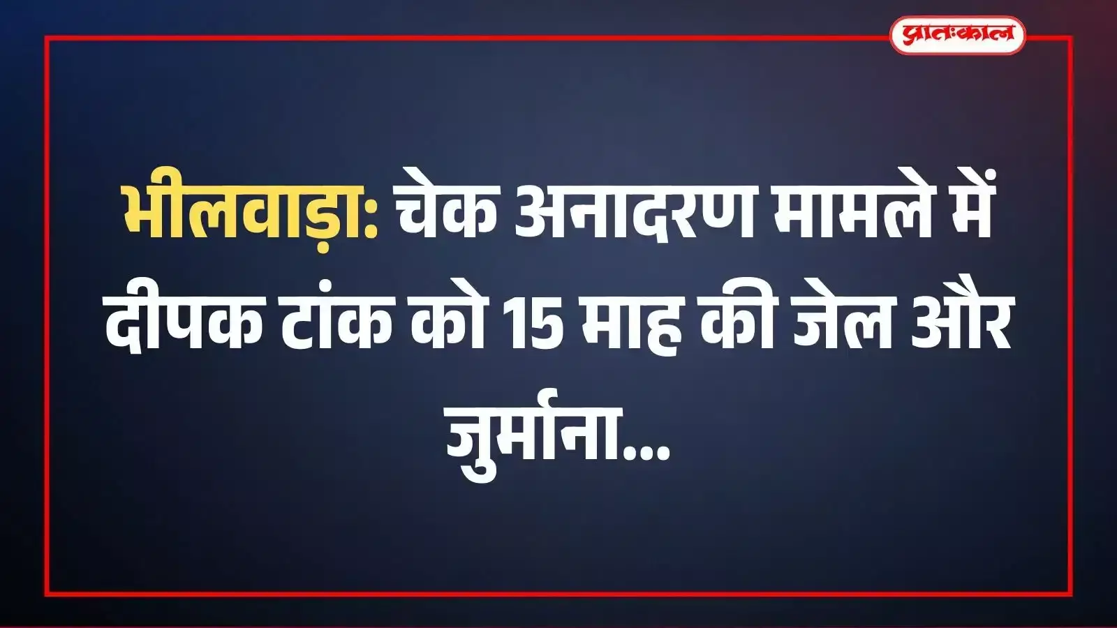 भीलवाड़ा: चेक अनादरण मामले में दीपक टांक को 15 माह की जेल और जुर्माना