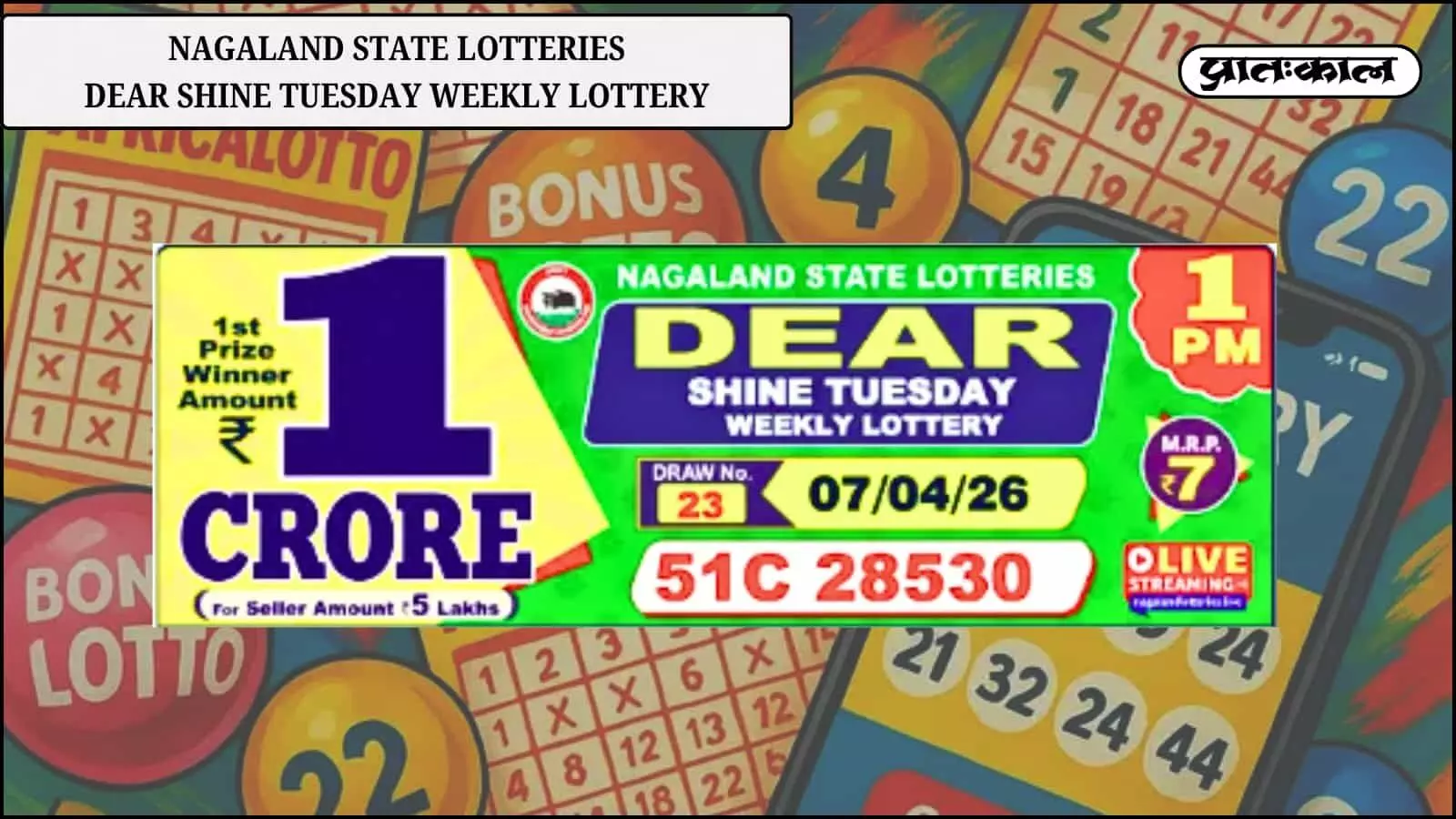 नागालैंड ‘डियर शाइन मंगलवार’ लॉटरी 7 अप्रैल 2026 में 51C 28530 ने जीता ₹1 करोड़ का जैकपॉट, कई अन्य विजेताओं को भी मिला इनाम।