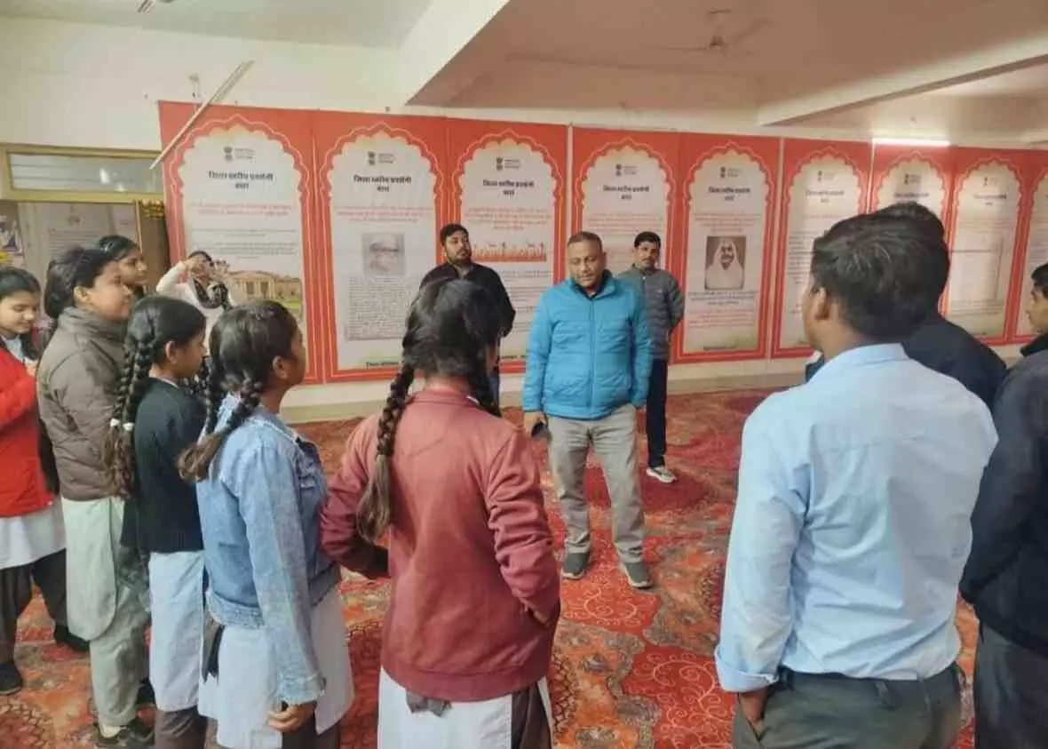 बारां के सूचना केंद्र में 'वंदे मातरम' के 150 वर्ष पूर्ण होने पर आयोजित भव्य प्रदर्शनी 'वंदे मातरम-150' में उमड़ रहा जनसैलाब। पीएम श्री राजकीय उच्च माध्यमिक विद्यालय, गजनपुरा के विद्यार्थियों ने जाना राष्ट्रगीत का गौरवशाली इतिहास और स्वतंत्रता सेनानियों का बलिदान। 31 जनवरी तक चलने वाली इस प्रदर्शनी के माध्यम से युवा पीढ़ी को देशप्रेम और एकता के सूत्र से जोड़ा जा रहा है।