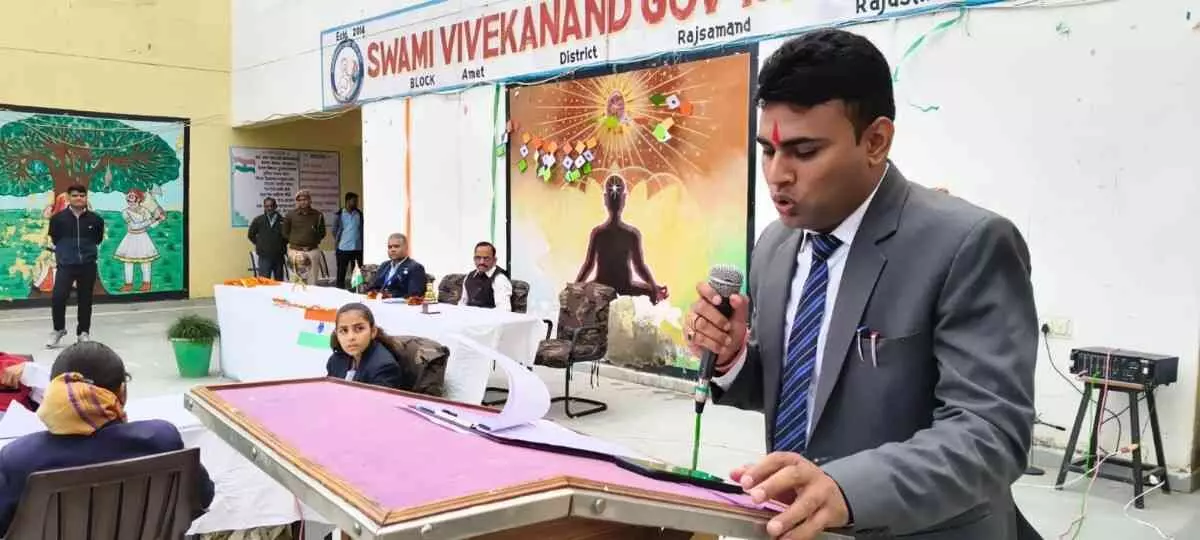 आमेट में संविधान दिवस पर स्वामी विवेकानंद राजकीय मॉडल स्कूल में बाल संसद एवं विशेष कार्यक्रम आयोजित किए गए। विद्यार्थियों ने मॉक सेशन में प्रधानमंत्री और संसद सदस्यों की भूमिकाएं निभाईं। न्यायाधीश और अधिवक्ताओं ने संविधान, मौलिक अधिकार और कर्तव्यों की जानकारी दी, कार्यक्रम का समापन संविधान प्रस्तावना वाचन से हुआ।
