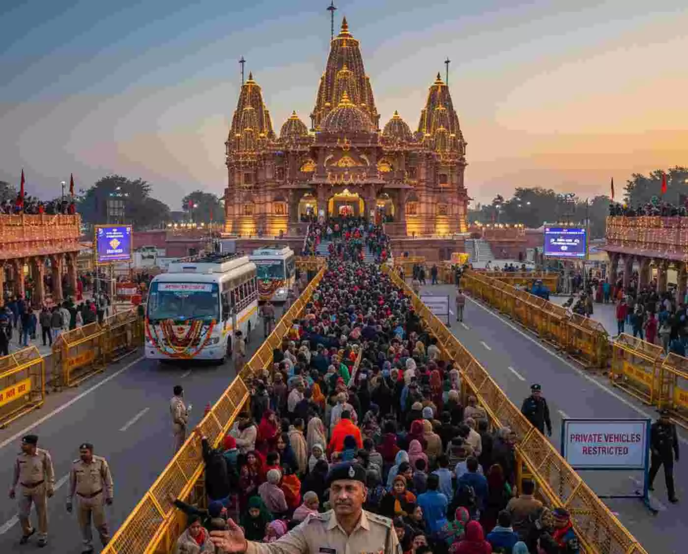 सवाई माधोपुर में नववर्ष 2026 पर त्रिनेत्र गणेश मंदिर में दर्शनार्थियों की सुविधा और सुरक्षा को देखते हुए प्रशासन ने विशेष यातायात प्रबंध किए हैं। उप वन संरक्षक एवं उपक्षेत्र निदेशक मानस सिंह ने निजी वाहनों पर प्रतिबंध और कैंटर शटल सेवा की व्यवस्था की जानकारी दी।
