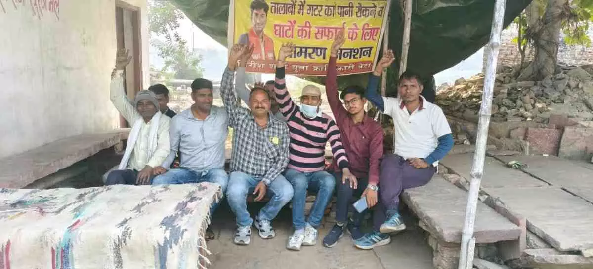 डीग में तालाबों की गंदगी और मछलियों की मौत पर गिरीश शर्मा ने तीसरे दिन भी जारी रखा अनशन